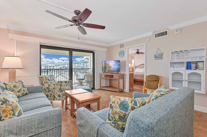 Enter any condo at Marina Village and your eyes will be drawn to the spacious lanai overlooking the Harbor and Back Bay. Here you can enjoy an ever-changing view of sunrises and sunsets, fishing boats motoring by, and dolphins playing.